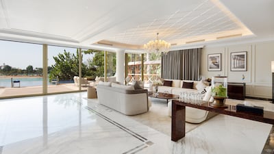 High-end living at its finest. This six-bedroom, six-bathroom Palm Jumeirah property has a gym, sauna, spa, cinema, infinity pool and 67 metres of private white, sandy beach.